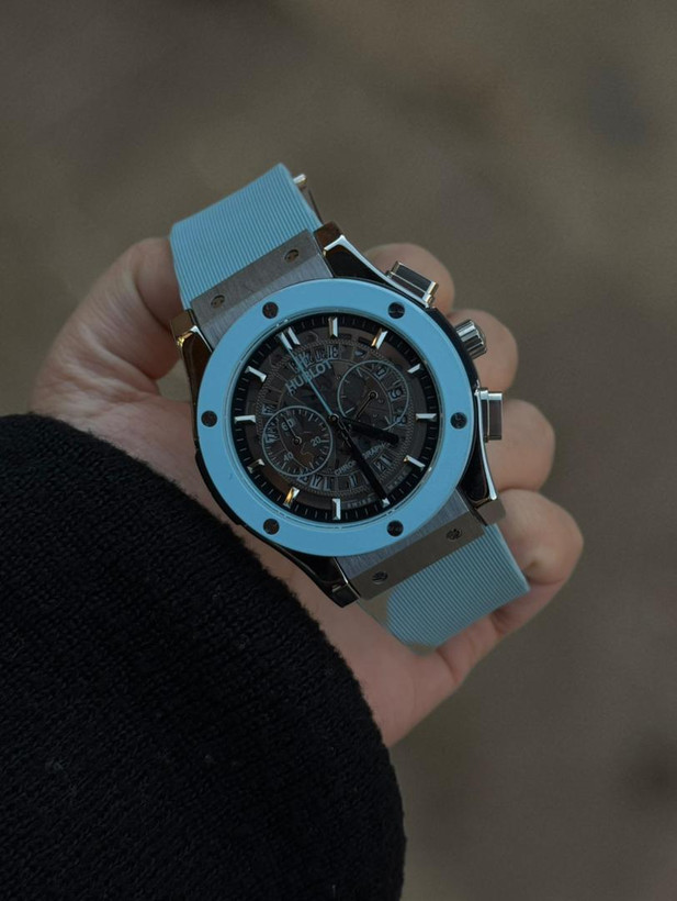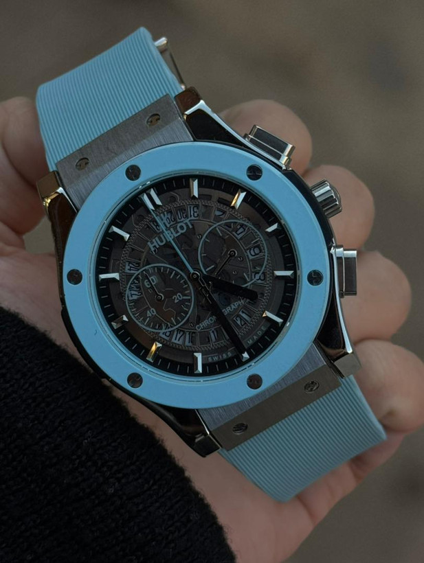ساعت مچی مردانه کرنوگراف از برند هابلوت که دارای موتور باطری ژاپن درجه 1 تقویم دار و تمامی موتورها فعال هست و قاب و قفل استیل درجه 1 و شیشه ضدخش است