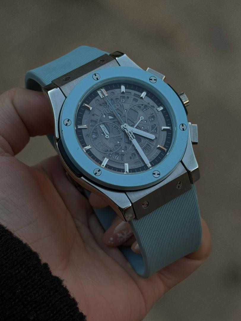 ساعت مچی مردانه کرنوگراف از برند هابلوت که دارای موتور باطری ژاپن درجه 1 تقویم دار و تمامی موتورها فعال هست و قاب و قفل استیل درجه 1 و شیشه ضدخش است