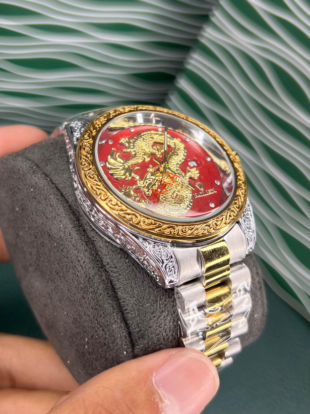 قاب و صفحه این ساعت دارای حکاکیهای خاصی از اژدهای سنتی است که با جزئیات بسیار دقیق طراحی شده است.