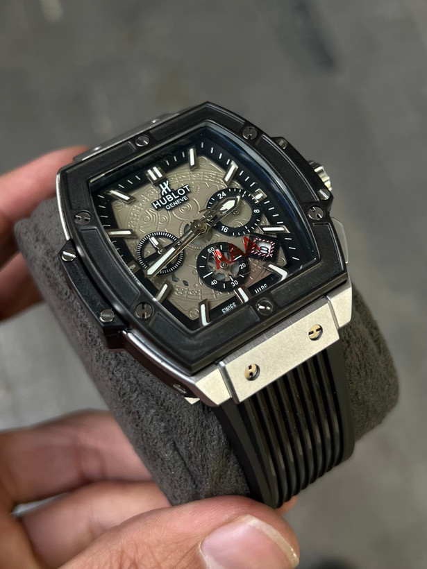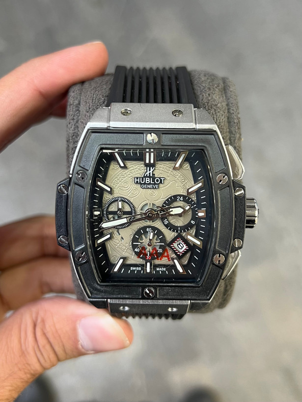 ساعت مچی مردانه کرنوگراف از برند هابلوت که دارای موتور باطری درجه 1 تقویم دار و تمامی موتورها فعال هست و قاب و قفل استیل درجه 1 و شیشه ضدخش است