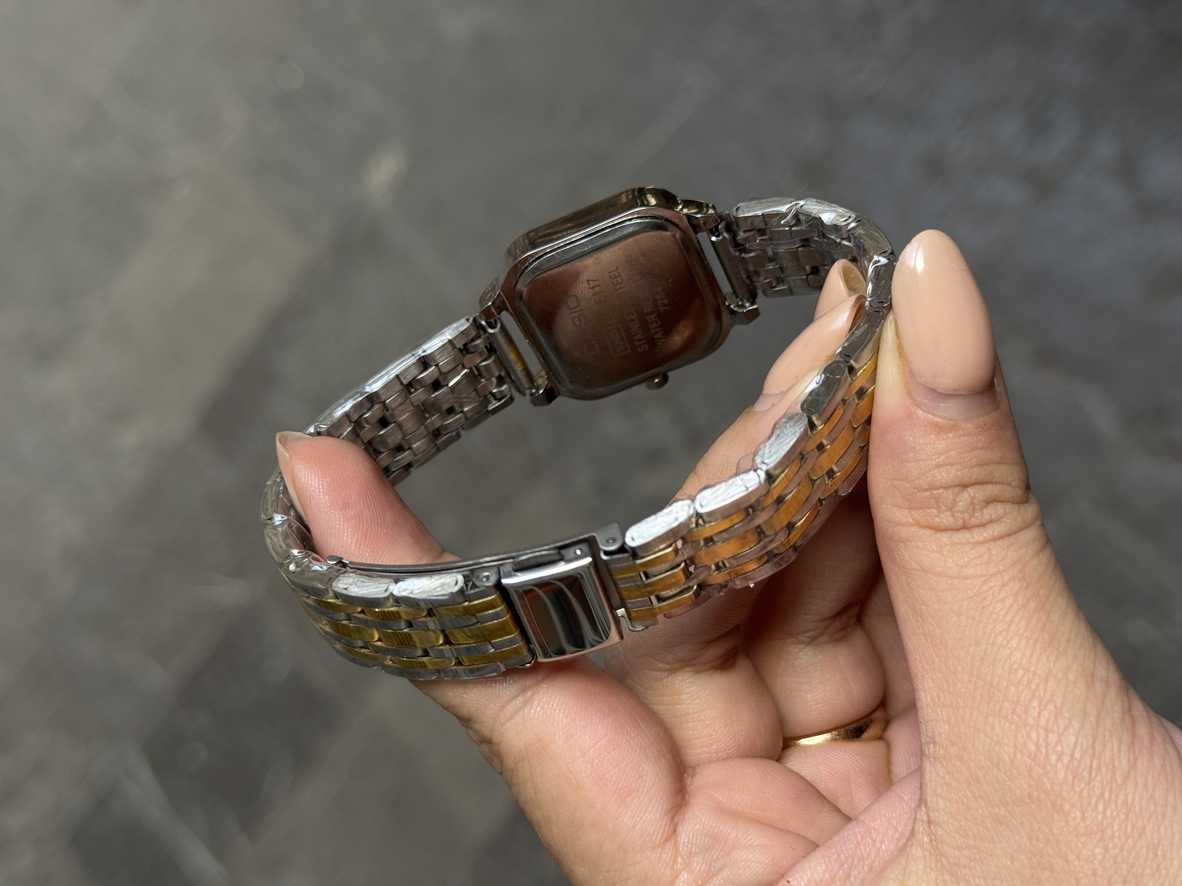 ساعت کاسیو مربعی زنانه با موتور باطری باکیفیت و بدنه استیل با کیفیت مناسب استفاده روزانه و استایل های رسمی و کلاسیک