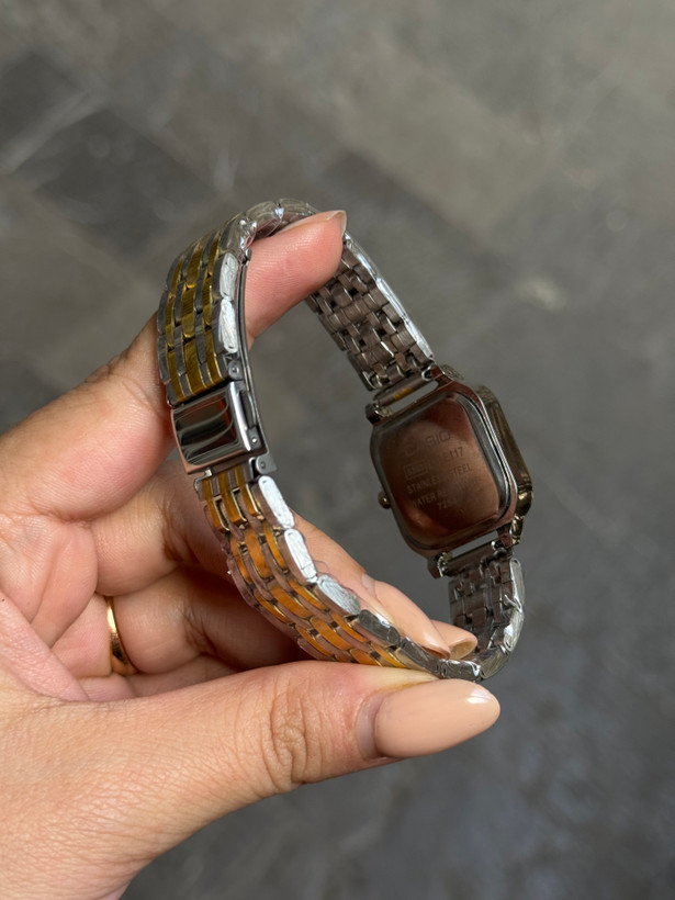 ساعت کاسیو مربعی زنانه با موتور باطری باکیفیت و بدنه استیل با کیفیت مناسب استفاده روزانه و استایل های رسمی و کلاسیک