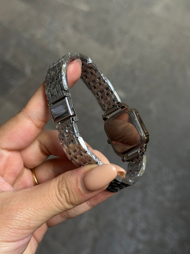 ساعت کاسیو مربعی زنانه با موتور باطری باکیفیت و بدنه استیل با کیفیت مناسب استفاده روزانه و استایل های رسمی و کلاسیک