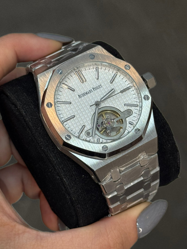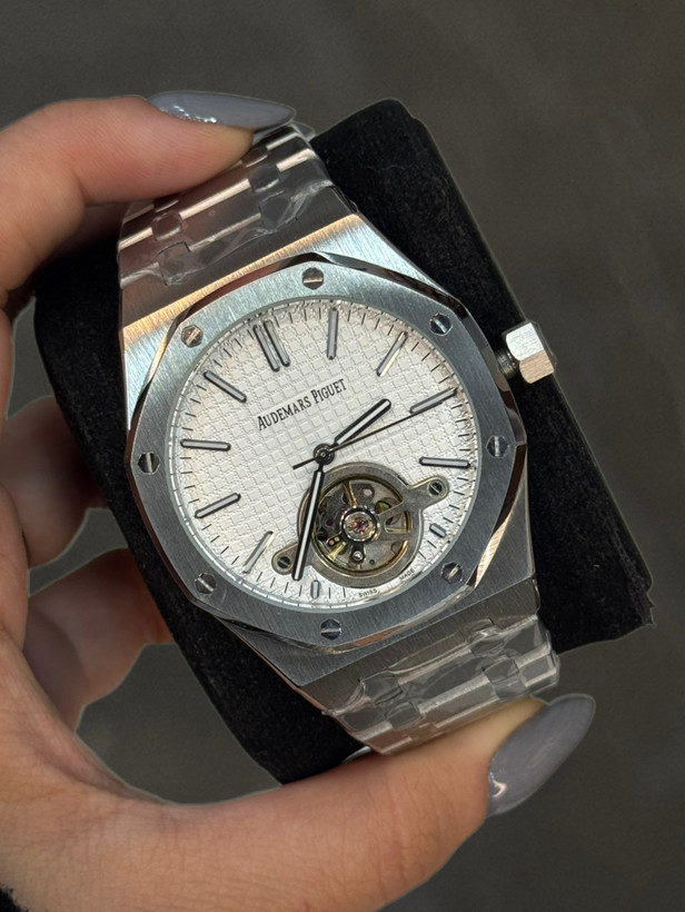 ساعت مچی مردانه از برند ای پی AP مدل رویال اوک که دارای موتور اتومات ژاپن درجه 1 و بدنه و قاب و قفل استیل درجه 1 و شیشه ضدخش است