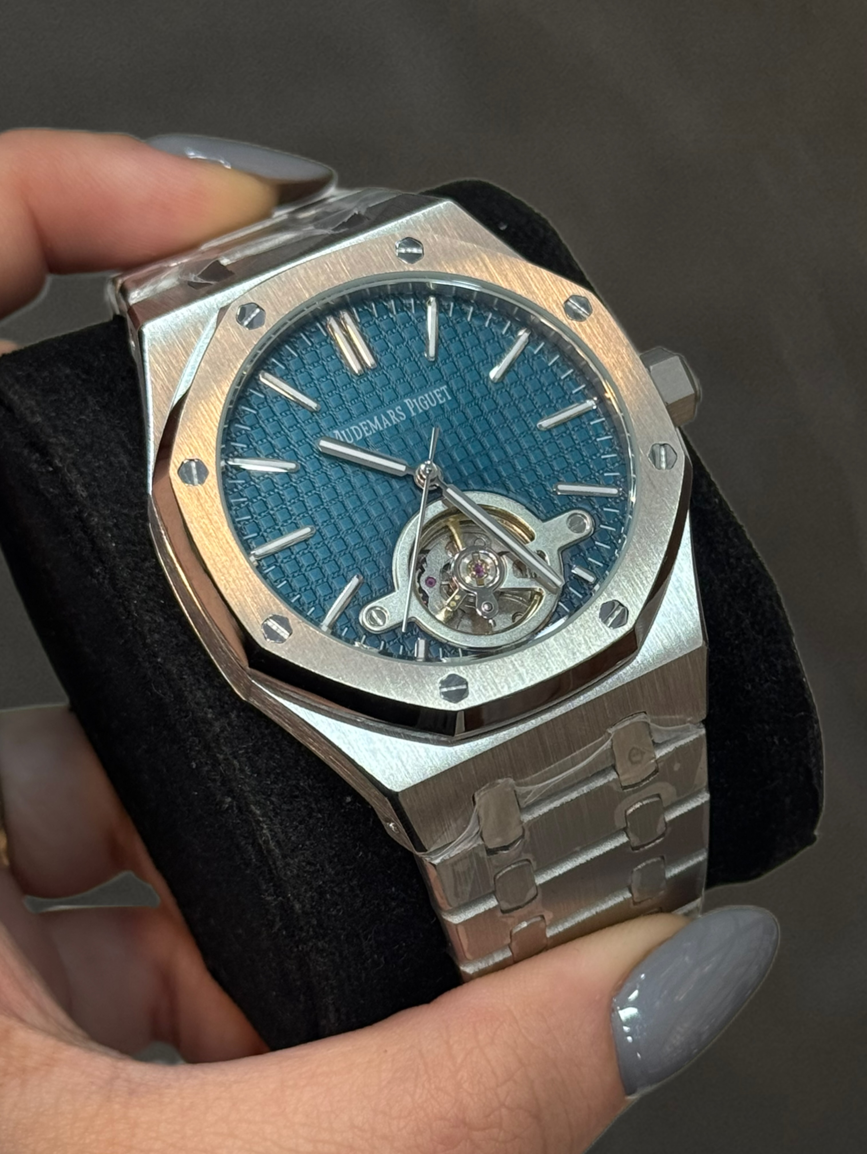 ساعت مچی مردانه از برند ای پی AP مدل رویال اوک که دارای موتور اتومات ژاپن درجه 1 و بدنه و قاب و قفل استیل درجه 1 و شیشه ضدخش است
