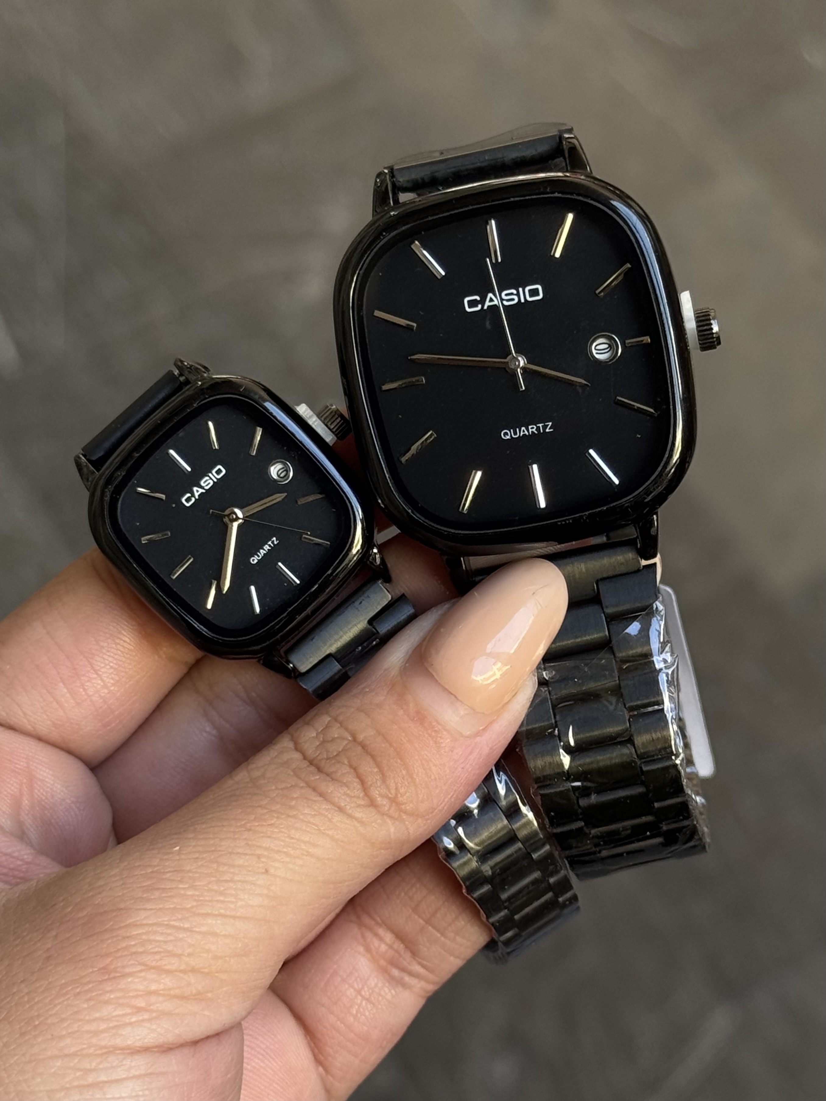 ساعت ست مردانه زنانه‌فول بلک کاسیو اولد مانی کیفیت درجه 1