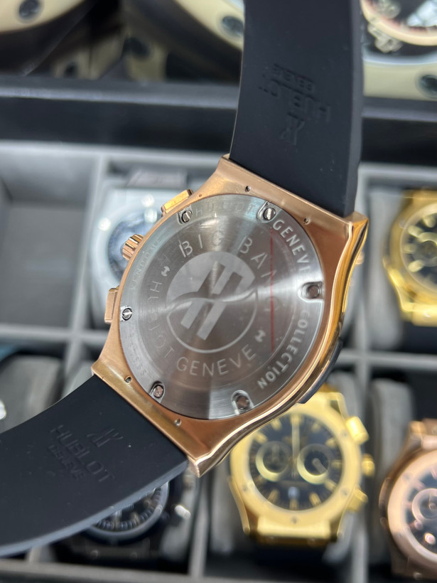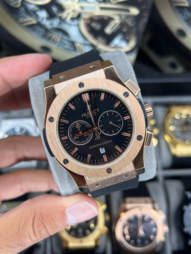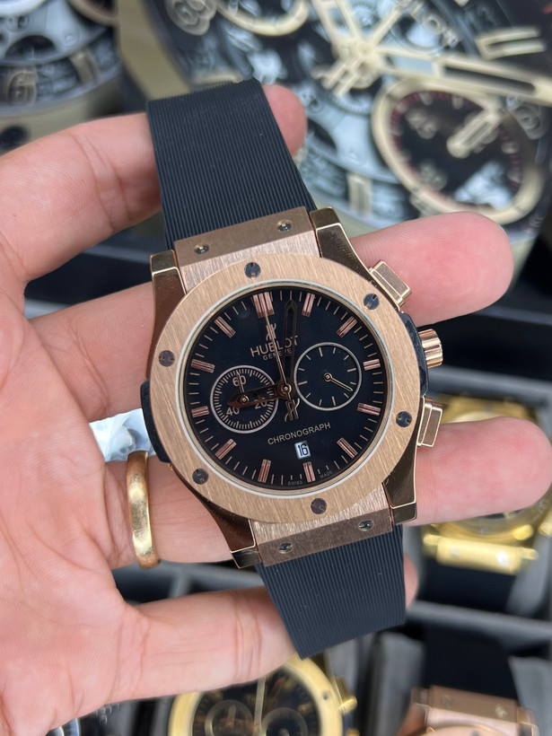 ساعت مچی مردانه کرنوگراف از برند هابلوت که دارای موتور باطری ژاپن درجه 1 تقویم دار و تمامی موتورها فعال هست و قاب و قفل استیل درجه 1 و شیشه ضدخش است