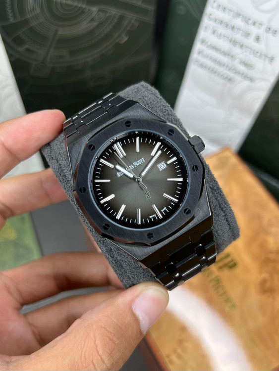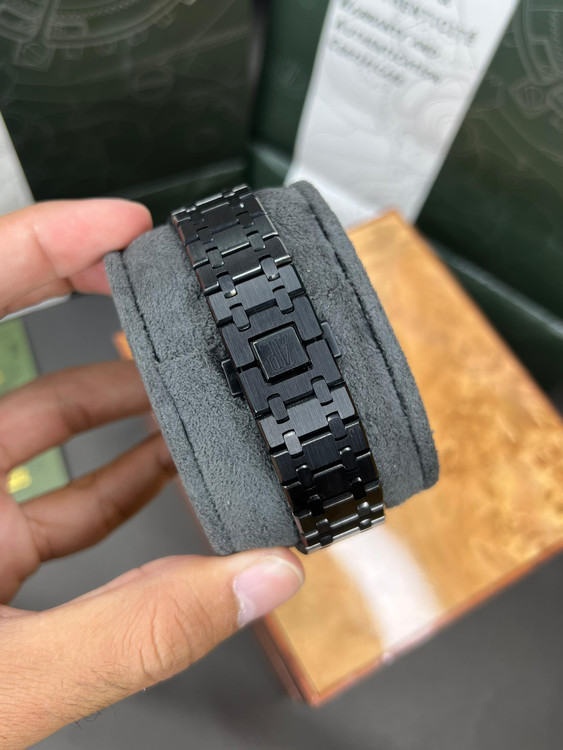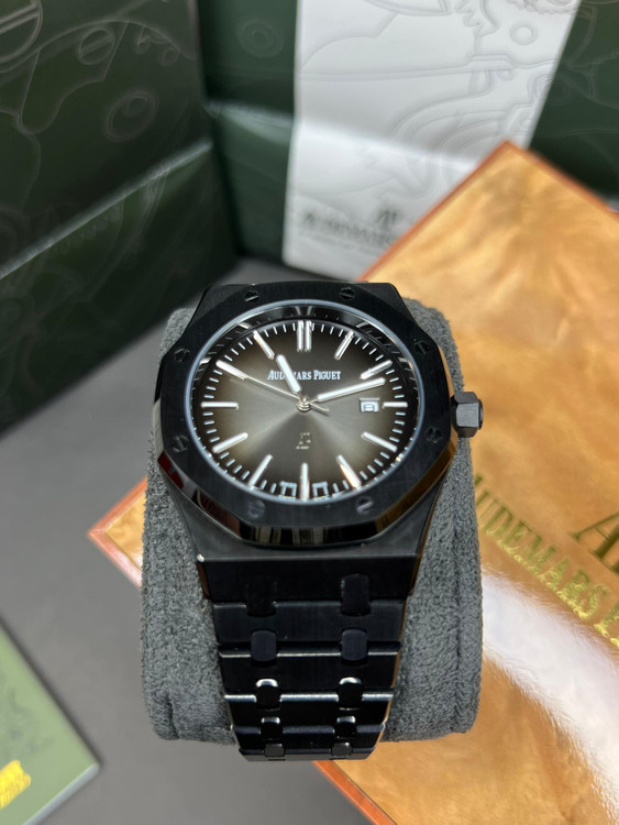 ساعت مچی مردانه از برند ای پی AP مدل رویال اوک که دارای موتور باطری ژاپن درجه 1 تقویم دار و بدنه و قاب و قفل استیل درجه 1 و شیشه ضدخش است