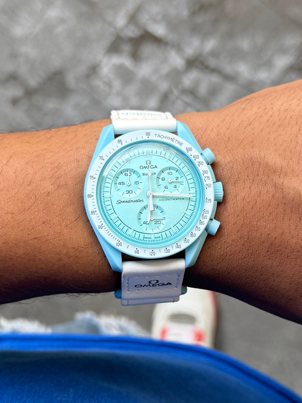 ساعت امگا سواچ با موتور کرنوگراف ژاپن درجه 1 با رنگ بندی و طراحی جذابی که جلوه ای جذاب به دستانتون میده