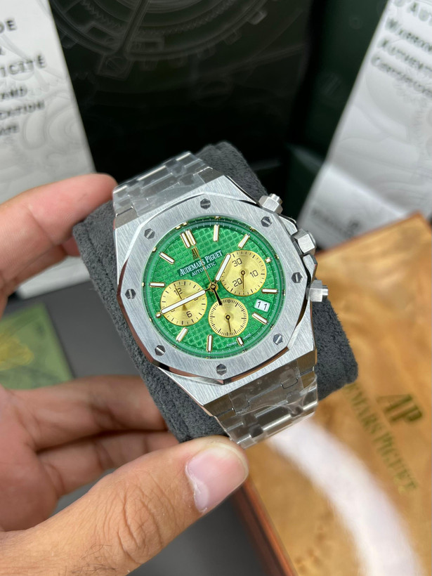 ساعت مچی مردانه کرنوگراف از برند ای پی AP که دارای موتور باطری ژاپن درجه 1 تقویم دار و تمامی موتورها فعال هست و بدنه و قاب و قفل استیل درجه 1 و شیشه ضدخش است