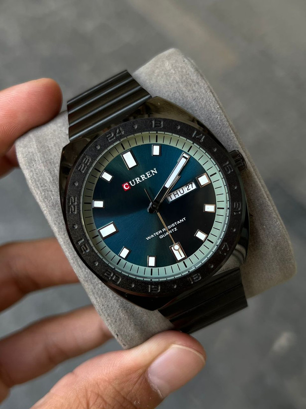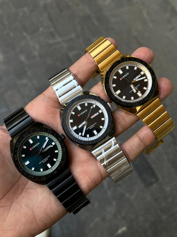 ساعت مچی مردانه از برند اورجینال curren که دارای موتور باطری ژاپن درجه 1 تقویم دار و بدنه و قاب و قفل استیل درجه 1 و شیشه ضدخش است