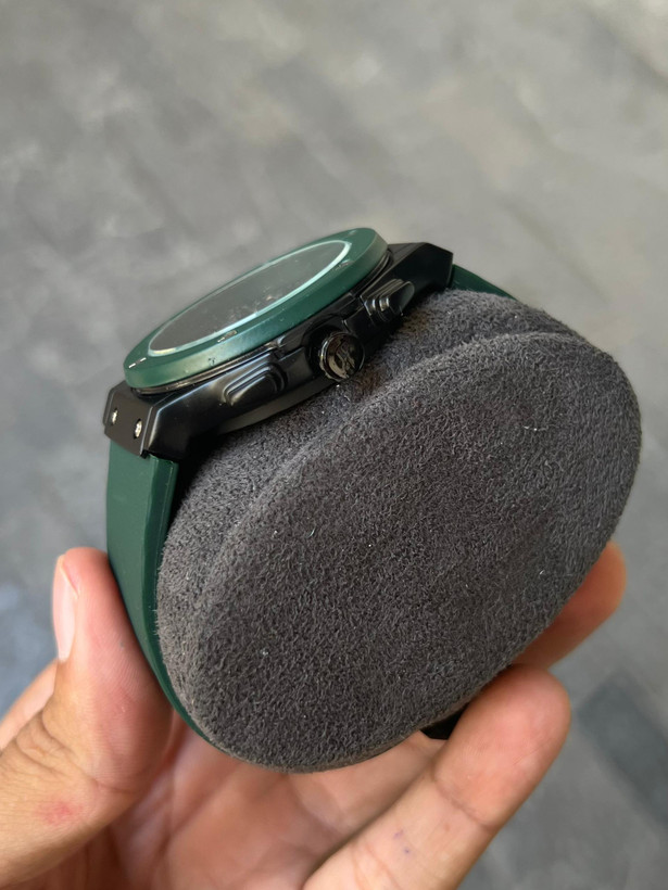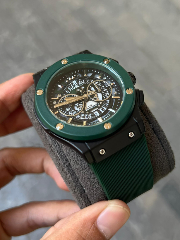 ساعت مچی مردانه تک موتور طرح کرنوگراف از برند هابلوت که دارای موتور باطری ژاپن درجه 1 تقویم دار هست و قاب و قفل استیل و شیشه باکیفیت است