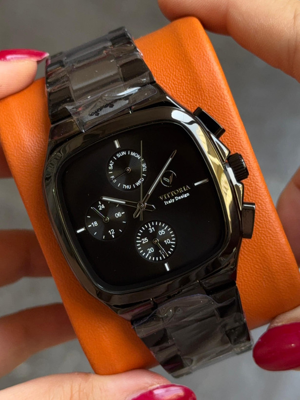 ساعت مربعی مردانه ویتوریا اورجینال فول تایم فول بلک
