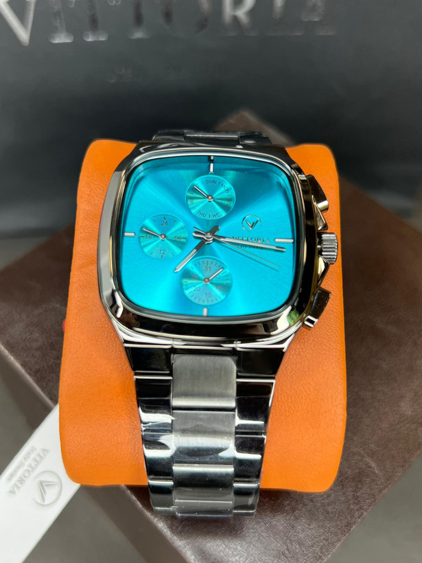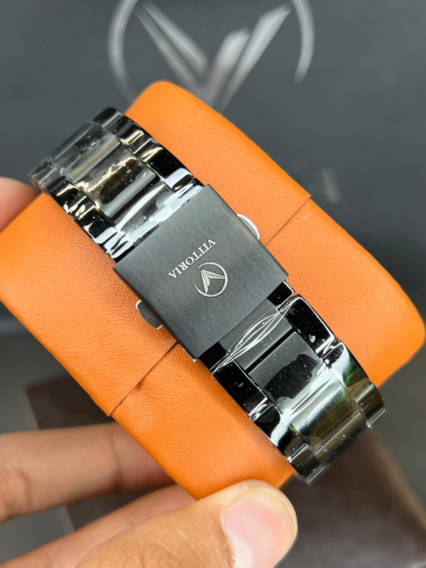 ساعت مچی مردانه پرطرفدار ایتالیایی ویتوریا که دارای موتور باطری ژاپن درجه 1فول تایم که دارای تقویمو تمامی موتورها فعال هست و بدنه و قاب و قفل استیل درجه 1 و شیشه ضدخش است