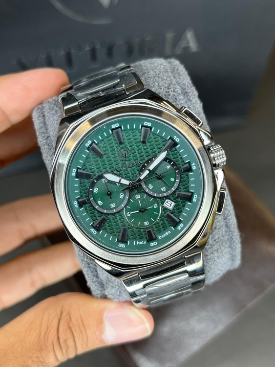 ساعت مچی مردانه پرطرفدار ایتالیایی ویتوریا که دارای موتور باطری ژاپن درجه 1کرنوگراف دارای تقویم و تمامی موتورها فعال هست و بدنه و قاب و قفل استیل درجه 1 و شیشه ضدخش است