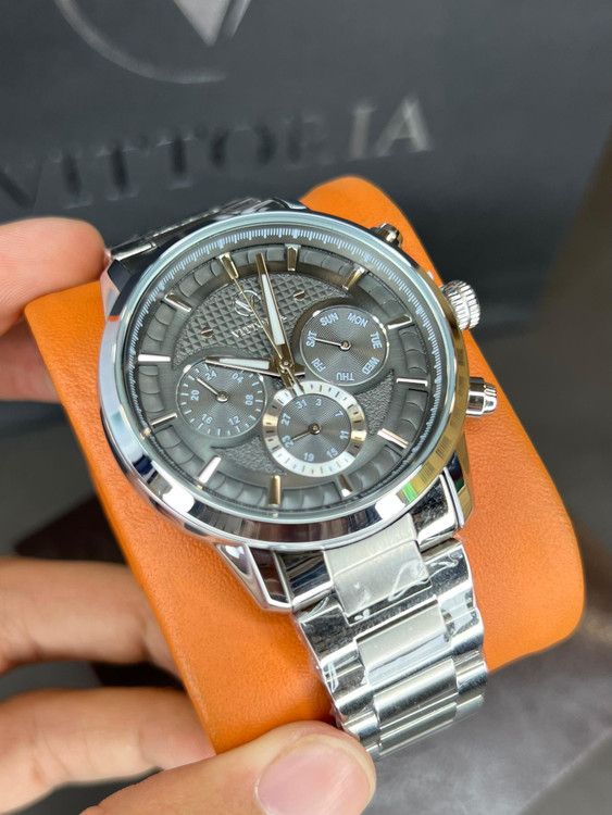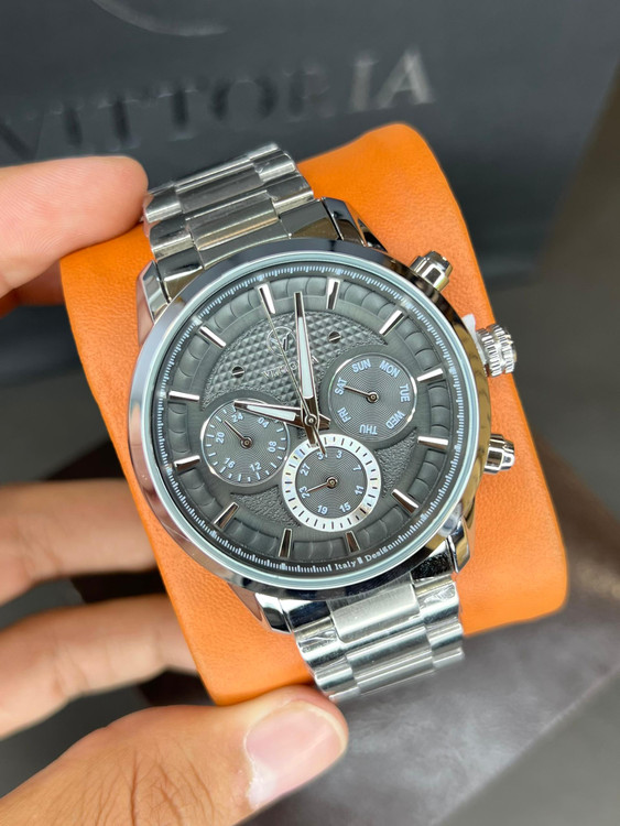 ساعت مچی مردانه پرطرفدار ایتالیایی ویتوریا که دارای موتور باطری ژاپن درجه 1کرنوگراف دارای تقویم و تمامی موتورها فعال هست و بدنه و قاب و قفل استیل درجه 1 و شیشه ضدخش است