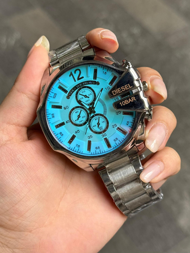 ساعت مچی مردانه کرنوگراف از برنددیزل که دارای موتور باطری ژاپن درجه 1 تقویم دار و تمامی موتورها فعال هست و بدنه و قاب و قفل استیل درجه 1 و شیشه ضدخش است