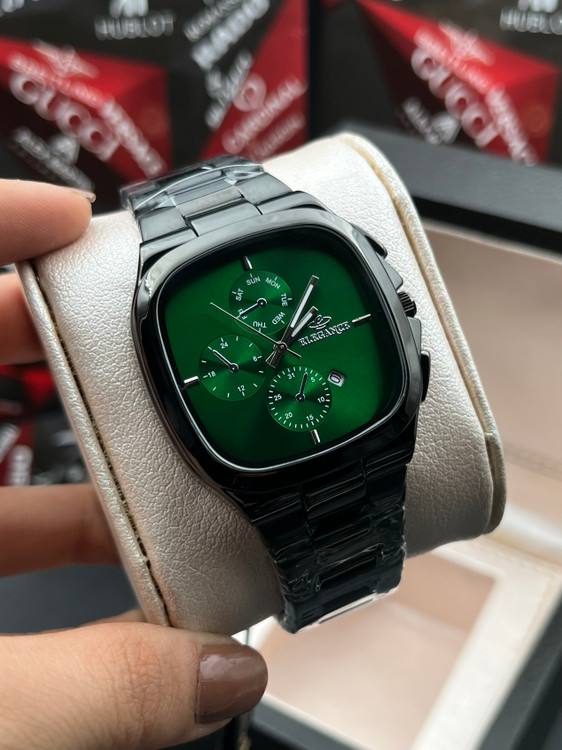 ساعت مچی جذاب با طراحی قاب مربعی از برند الگانس با موتور ژاپن تقویم دار طرح کرنوگراف با بدنه استیل باکیفیت با قیمت فوق العاده اقتصادی تقدیم شما عزیزان میشه❤️