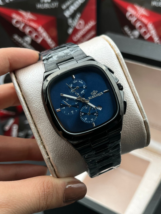 ساعت مچی جذاب با طراحی قاب مربعی از برند الگانس با موتور ژاپن تقویم دار طرح کرنوگراف با بدنه استیل باکیفیت با قیمت فوق العاده اقتصادی تقدیم شما عزیزان میشه❤️