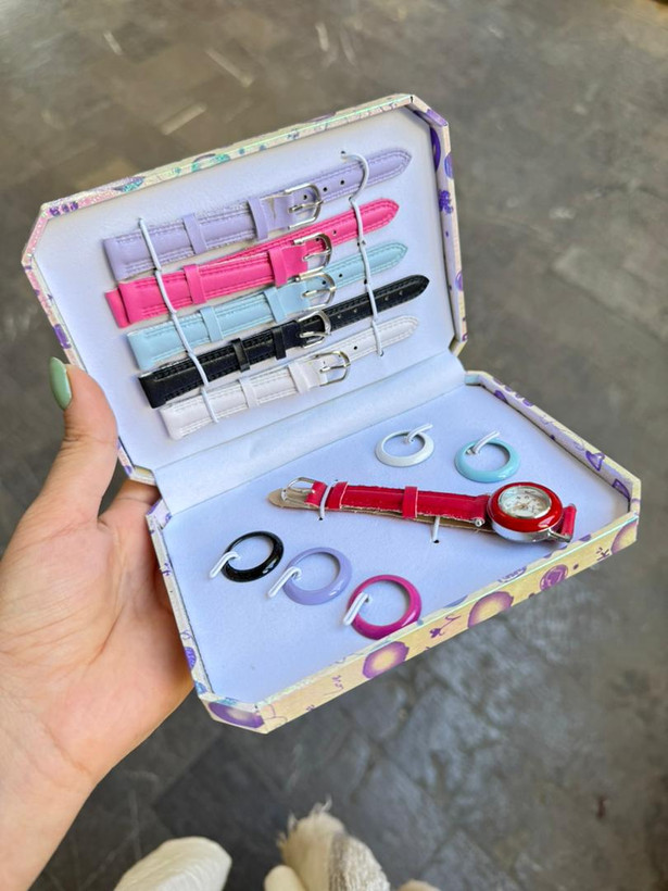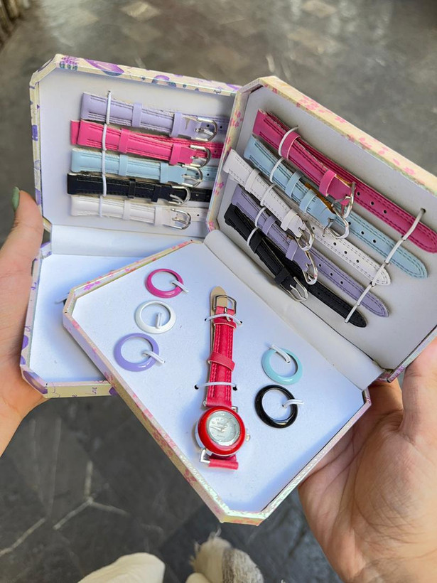 ساعت زنانه با ۶ بند و ۶ قاب یه پک هدیه جذاب و خاصه که به کاربر اجازه میده ظاهر ساعتش رو با استایلهای مختلف ست کنه. این ست معمولاً شامل یه ساعت اصلی با صفحه ظریف و ۶ بند در رنگها و جنسهای متنوعه، بهعلاوه ۶ قاب قابل تعویض برای تغییر فرم ظاهری. انتخابی عالی برای هدیه دادن، چون هم کاربردیه هم تنوع زیادی در استایل ایجاد میکنه
