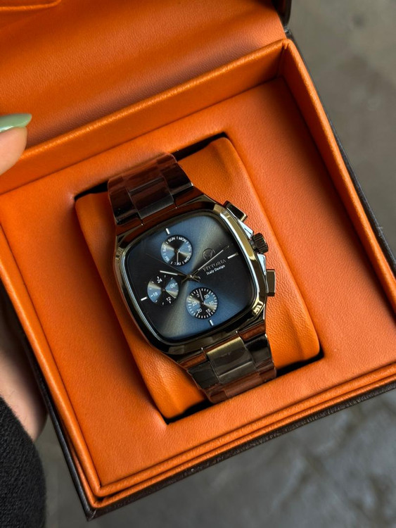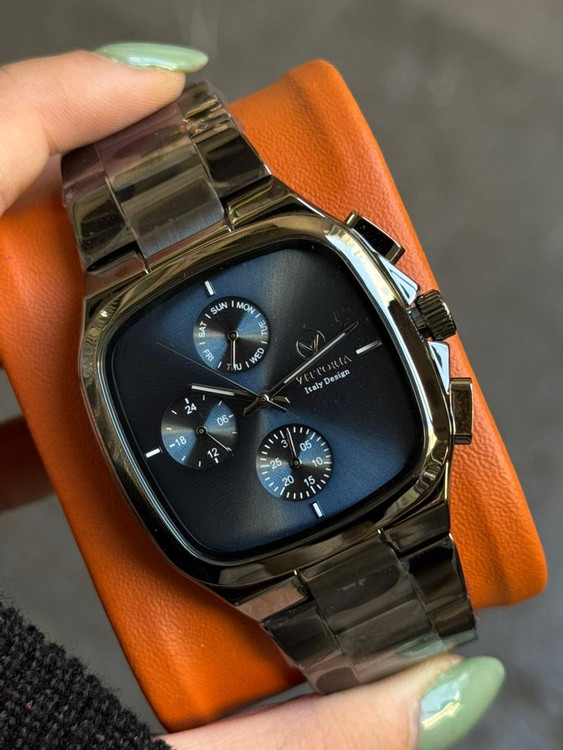 ساعت مچی مردانه پرطرفدار ایتالیایی ویتوریا که دارای موتور باطری ژاپن درجه 1فول تایم که دارای تقویمو تمامی موتورها فعال هست و بدنه و قاب و قفل استیل درجه 1 و شیشه ضدخش است