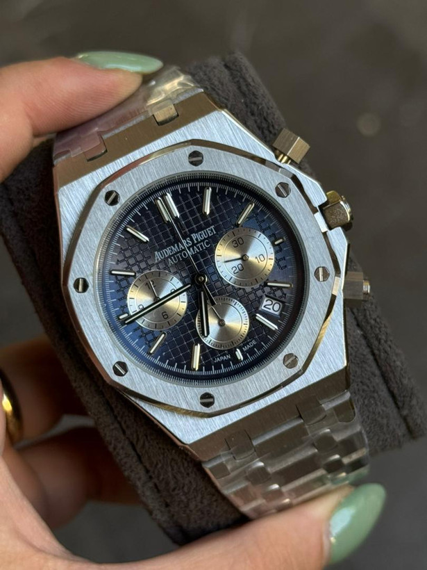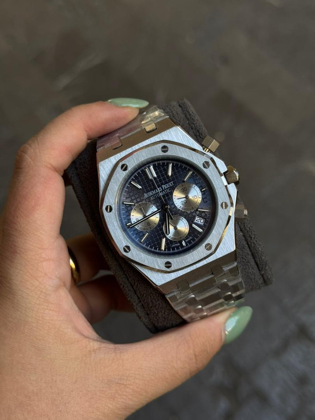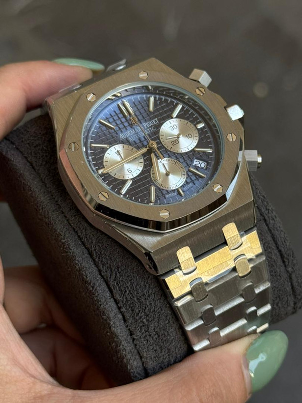 ساعت مچی مردانه کرنوگراف از برند ای پی AP که دارای موتور باطری ژاپن درجه 1 تقویم دار و تمامی موتورها فعال هست و بدنه و قاب و قفل استیل درجه 1 و شیشه ضدخش است