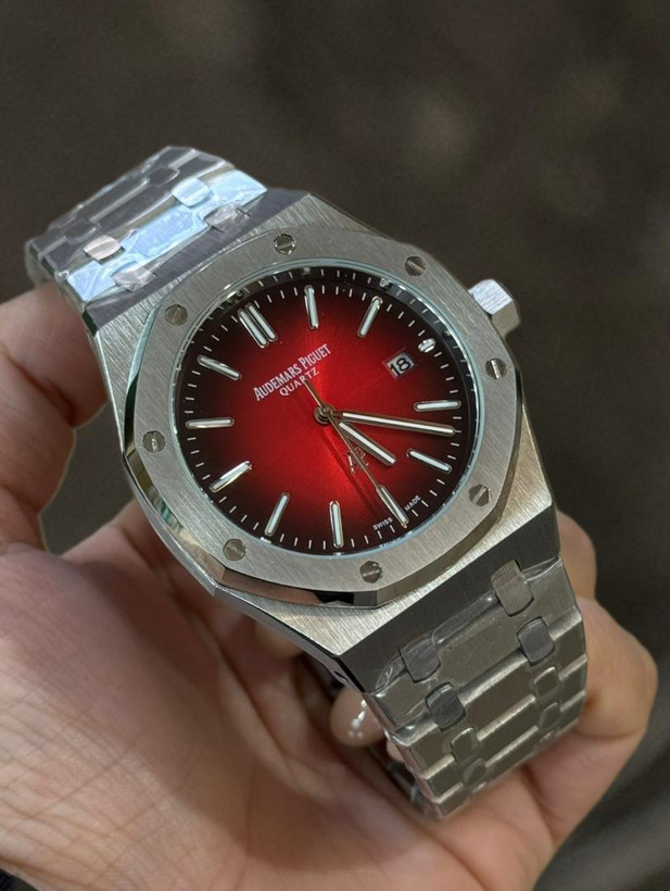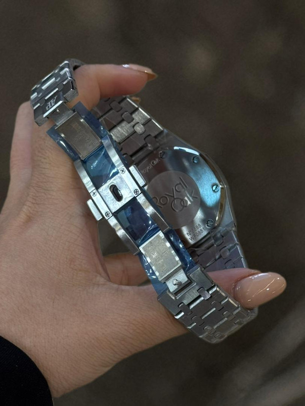 ساعت مچی مردانه از برند ای پی AP مدل رویال اوک که دارای موتور باطری ژاپن درجه 1 تقویم دار و بدنه و قاب و قفل استیل درجه 1 و شیشه ضدخش است